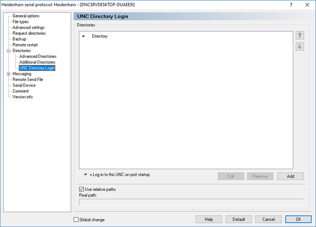 UNC Directory Login dialog